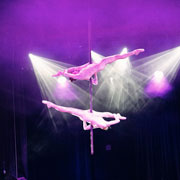 Das Pole Akrobatik Frauen Duo besteht aus den bezaubernden Künstlerinnen Lea Fierke und Evelyn Weinzettl. Beide absolvierten professionelle Tanzausbildungen (u.a. an der Staatlichen Ballettschule Berlin) und starteten ihre Karrieren als Bühnentänzerinnen in diversen Bereichen (Deutsches Fernsehballett, TV- Shows, Corporate Events, Dinnershows, Musikvideo-Produktionen, internationale Galas & Shows).