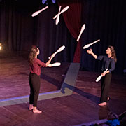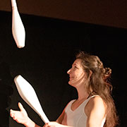 Ronja Siewert ist eine international bekannte Strapaten- und Keulen-Passing-Artistin. Wo sie ist, wird hochgeschaut: Entweder hängt sie selbst mit ihren Strapaten in der Luft oder es werden Keulen geworfen, gefangen und in komplexen Mustern und Bewegungsabläufen vor den Augen des Publikums manipuliert. Charismatisch schafft sie es in verschiedenen Trios sowie mit ihrem eigenen Stil, das Publikum mitzureißen.