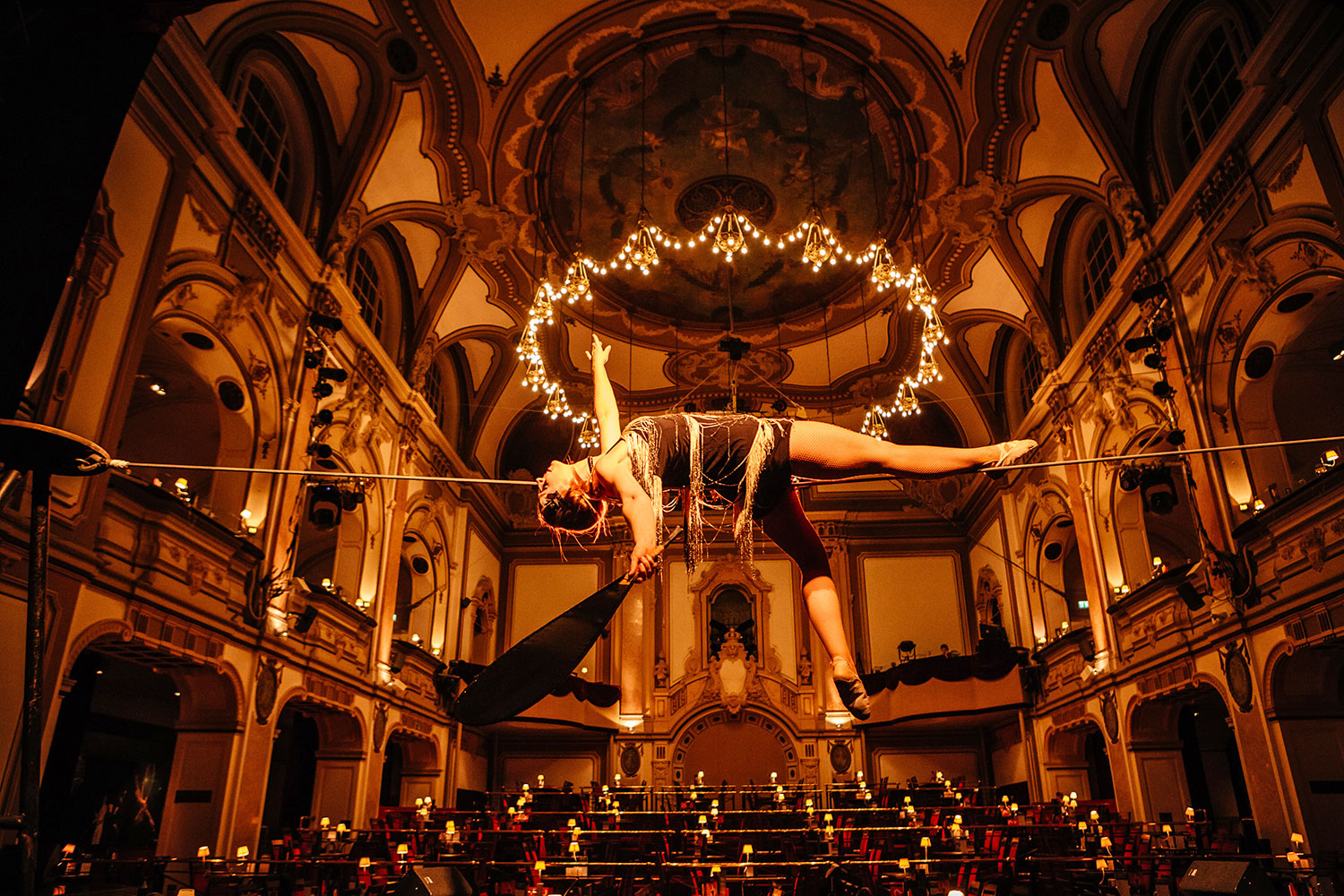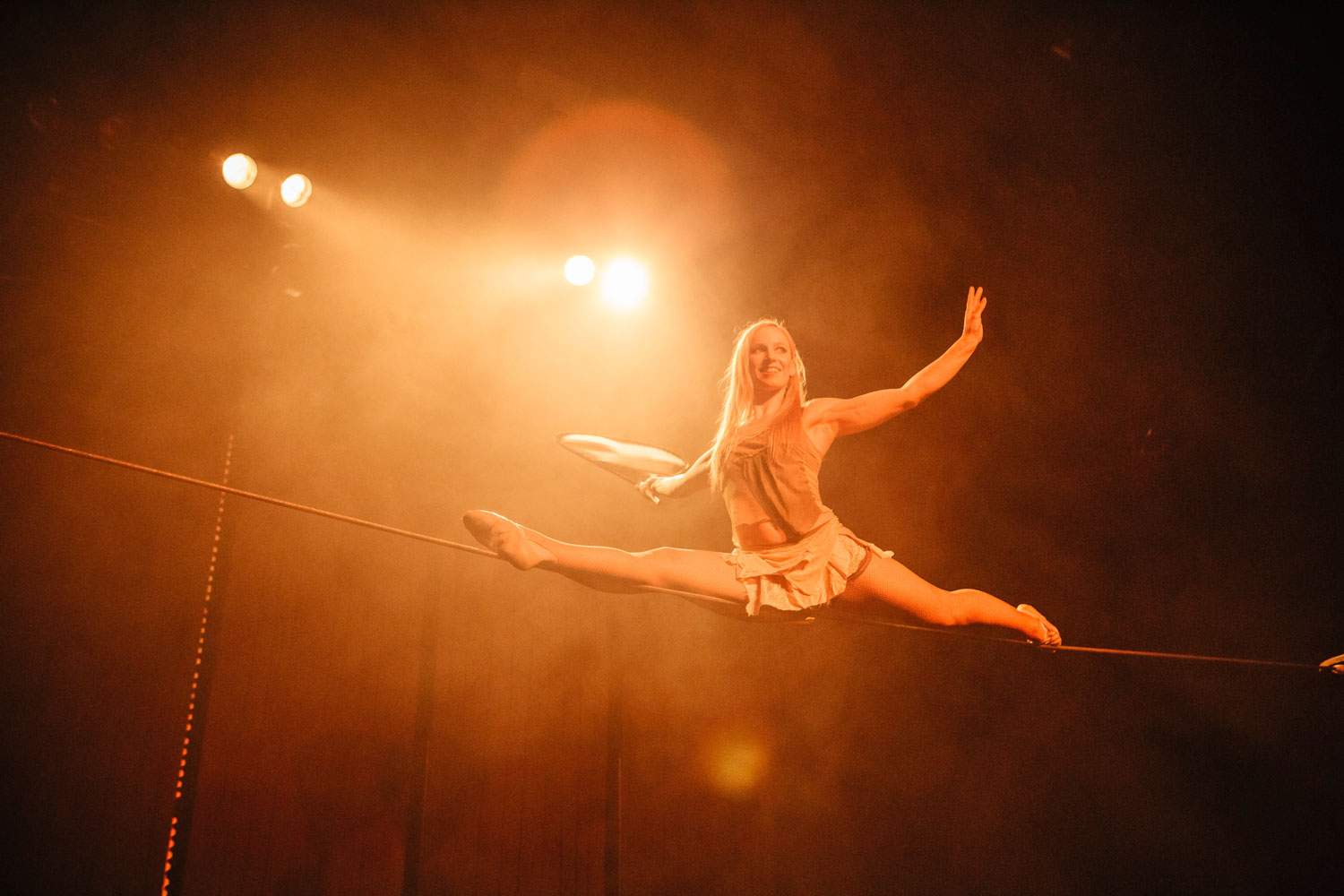 Mit traumwandlerischer Sicherheit tanzt Silea so leichtfüßig über das Seil, dass dieses gerade mal fingerdicke Requisit zur Tanzfläche wird. Und sie weiß diese Tanzfläche zu bespielen! Zur eigens für sie komponierten Musik schöpft Silea virtuos aus dem reichen Fundus ihrer Tanzkunst - elegisch gleitend zu den melancholischen Akkordeonklängen des Tangos, wild springend zu E-Gitarre und Gipsy Ska oder ausgelassen swingend zum flotten Charleston. Hier verschmelzen Musik und Tanz in perfekter Harmonie.
