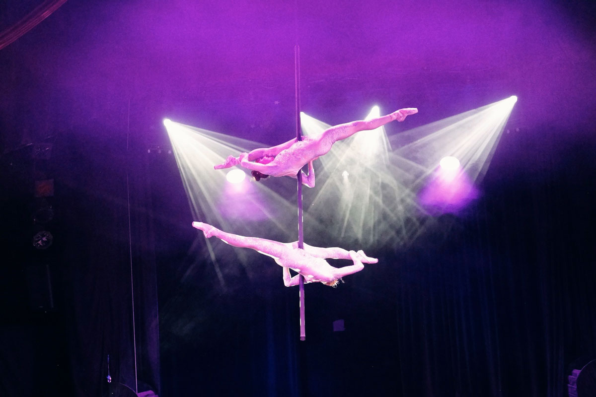 Pole On Stage das sind Lea und Evelyn. Das charmante Duo kombiniert Eleganz, Kraft und Expressivität in ihren atemberaubenden Shows, die jedes Publikum begeistern. Sie beeindrucken nicht nur mit ihren endlos langen Beinen, sondern vor allem mit ihrer ausdrucksstarken Bühnenpräsenz. Auf Spitzenschuhen verbinden sie die Geschmeidigkeit von klassischem und contemporary Ballett, Tango Argentino und lyrical Jazz mit den kraftvollen Elementen der Pole Artistik.