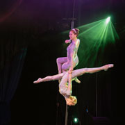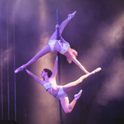 Das Pole Akrobatik Frauen Duo besteht aus den bezaubernden Künstlerinnen Lea Fierke und Evelyn Weinzettl. Beide absolvierten professionelle Tanzausbildungen (u.a. an der Staatlichen Ballettschule Berlin) und starteten ihre Karrieren als Bühnentänzerinnen in diversen Bereichen (Deutsches Fernsehballett, TV- Shows, Corporate Events, Dinnershows, Musikvideo-Produktionen, internationale Galas & Shows).