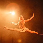 Mit traumwandlerischer Sicherheit tanzt Silea so leichtfüßig über das Seil, dass dieses gerade mal fingerdicke Requisit zur Tanzfläche wird. Und sie weiß diese Tanzfläche zu bespielen! Zur eigens für sie komponierten Musik schöpft Silea virtuos aus dem reichen Fundus ihrer Tanzkunst - elegisch gleitend zu den melancholischen Akkordeonklängen des Tangos, wild springend zu E-Gitarre und Gipsy Ska oder ausgelassen swingend zum flotten Charleston. Hier verschmelzen Musik und Tanz in perfekter Harmonie.
